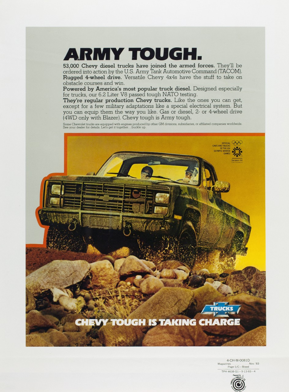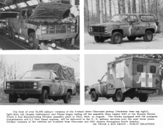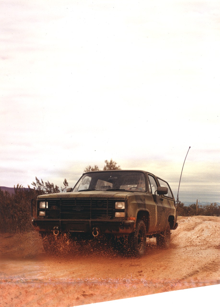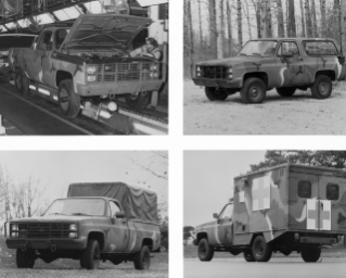 ca. 1984 Chevrolet K Series Blazer 4x4 (Left)ca. 1984 Armored Utility Vehicle (Center)ca. 1984 Chevrolet K Series Cab Chassis